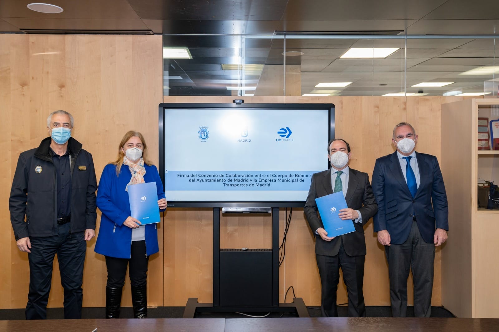 La delegada de Seguridad y Emergencias y portavoz municipal, Inmaculada Sanz, y el delegado de Medio Ambiente y Movilidad, Borja Carabante, han firmado esta mañana un convenio de colaboración por el que Bomberos de Madrid y la Empresa Municipal de Transportes (EMT) se comprometen a fomentar la colaboración, coordinación y cooperación ante situaciones de emergencia.