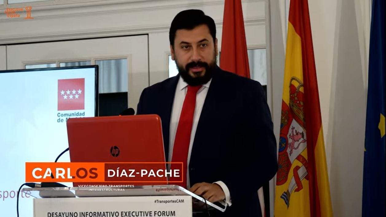 El viceconsejero de Transportes e Infraestructuras de la Comunidad de Madrid, Carlos Díaz-Pache, ha participado esta mañana en un desayuno informativo organizado por Executive Forum, con la colaboración de la UTE Fujitsu-IDOM y de Inetum. Durante su intervención, el viceconsejero se ha referido a la innovación y al futuro del transporte público en la Comunidad de Madrid.