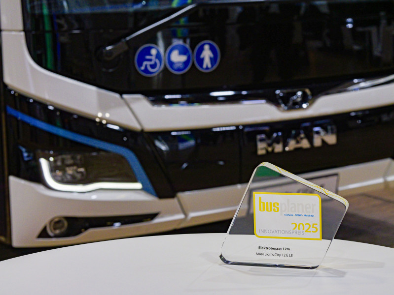 | MAN Lion’s City 12 E LE galardonado con el premio busplaner Innovation Award 2025 en la categoría de «autobuses eléctricos de 12 metros».El autobús de piso bajo impresiona por la flexibilidad de uso en trayectos urbanos e interurbanos, la sostenibilidad y el alto rendimientoEl autobús urbano totalmente eléctrico ya se coronó como el autobús sostenible del año 2025 Gracias a su carácter polivalente y sostenible, el MAN Lion’s City 12 E LE goza de gran popularidad tanto en entornos urbanos como rurales, y ahora ha triunfado también en la edición de 2025 de los premios busplaner Innovation, donde ha obtenido el primer puesto en la categoría de «autobuses eléctricos de 12 metros», alzándose así con uno de los galardones más codiciados. Se trata de una condecoración otorgada por la revista especializada alemana busplaner (Huss-Verlag), cuyos lectores han podido elegir entre 66 soluciones innovadoras y prácticas nominadas por el equipo editorial en 13 categorías: desde modelos eléctricos, híbridos y de larga distancia hasta sistemas de asistencia, gestión de flotas y servicios pioneros de turismo en autobús. «Estamos encantados de que el MAN Lion’s City 12 E LE haya ganado la encuesta de los lectores. El resultado demuestra que los clientes han quedado impresionados con nuestro autobús, no solo por su flexibilidad y comodidad, sino también por su rendimiento y enfoque sostenible», afirma Darko Simeunovic, director de ventas de autobuses de MAN Truck & Bus en Alemania. Y no es para menos, pues este autobús urbano totalmente eléctrico cuenta con un motor eléctrico central de gran potencia que alcanza los 240 kW. Además, con el concepto modular de baterías de MAN, los operadores de rutas urbanas e interurbanas tienen la posibilidad de decidir cuántos paquetes de baterías utilizar en función del tiempo de carga, el número de pasajeros y la autonomía; se pueden emplear entre cuatro y seis, con una capacidad total de hasta 480 kWh. |